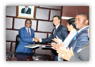 Signing of commercial contract, 20 cities project between the CEO of WPIL Ltd India and the Minister of Water and Energy 2018 for design, remediation and extension works of drinking water systems networks in 20 cities in Cameroon – Within 20 cities the work consists of, among other things: